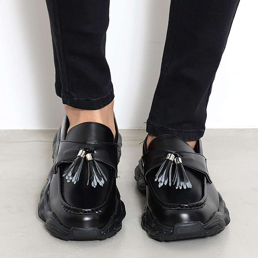 楽天市場 送料無料 ローファー メンズ 靴 シューズ タッセル ダッドソール 厚底 おしゃれ Puレザー 合成皮革 ブラック 黒 カジュアル フォーマル きれいめ モード 韓国 Bitter系 ビター系 Sb Select シルバーバレットセレクト 春 夏 21 あす楽対応 Silver